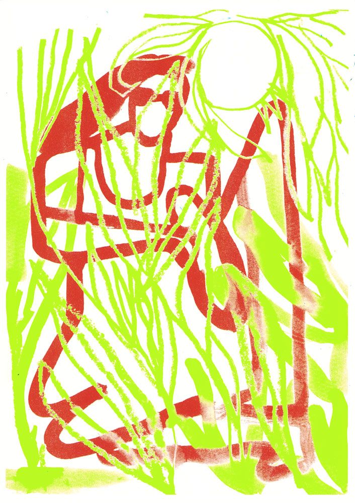 Gardens of fire Artwork size A3, riso print on munkenpaper, limited edition of 10, made originally on a residency in the Hotel Luna Mondschein in Bolzano 2022.