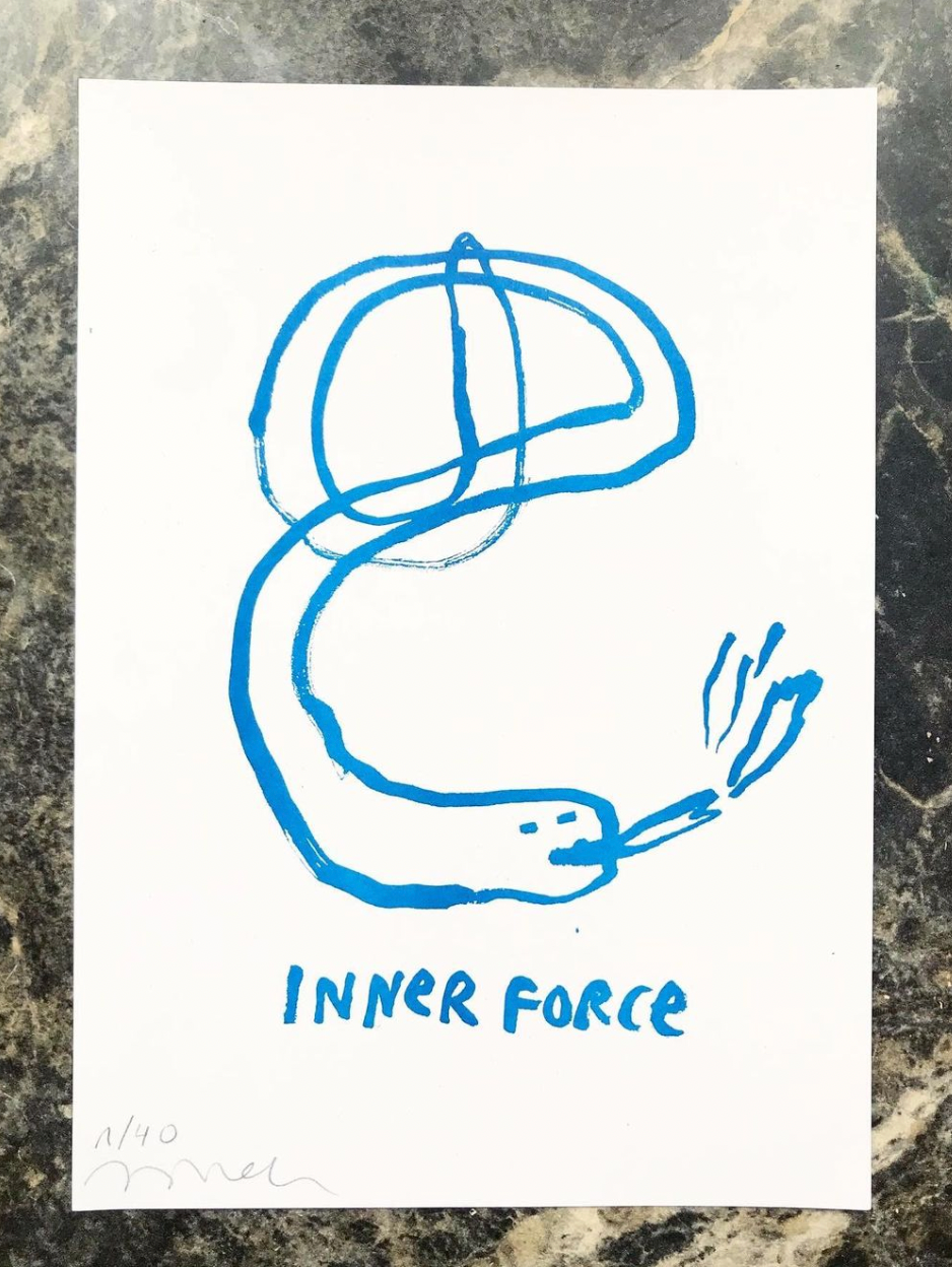 Inner Foce, 2020. Riso print in Munken a4 polar paper 220g, edition of 40 shipping costs extra. This print was made as a limited edition serie that I especially created with much joy for Original Feelings Yoga Studio, ass ca collaboration with their quotes and my drawings 🌚 q printed in Modem Studio