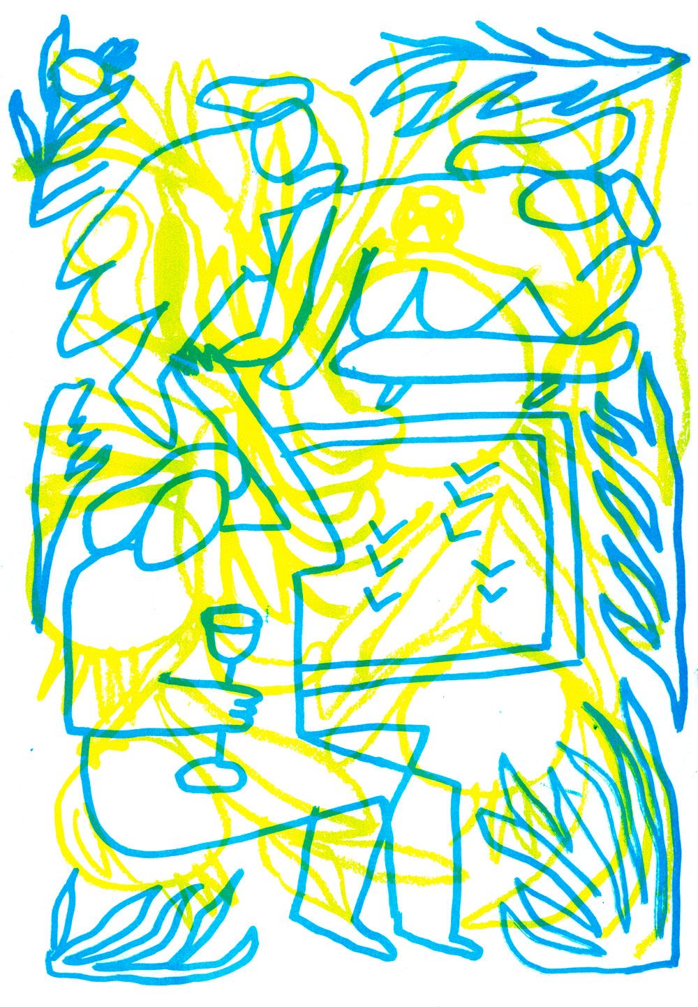 Artwork size A3, riso print on 2 colours in munkenpaper, edition of 10, made for Hotel Luna Mondschein in Bolzano 2022.