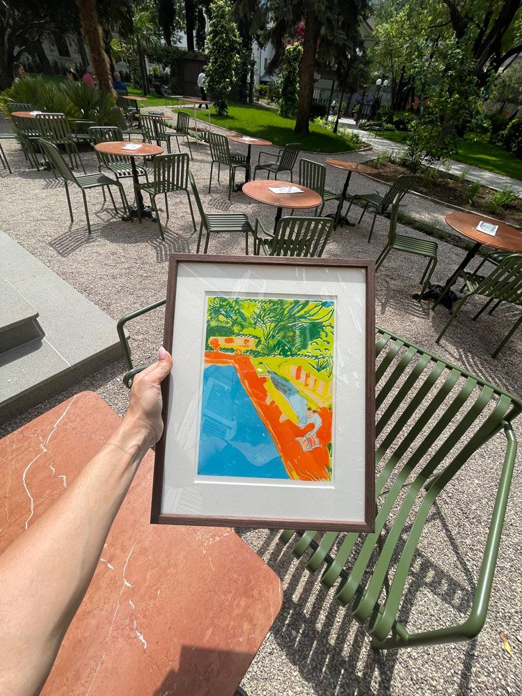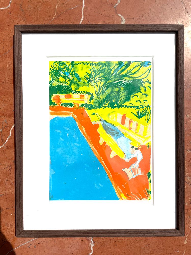 Artwork size A4, riso print on munkenpaper 5 colors, edition of 10, made for Hotel Luna Mondschein in Bolzano 2022 on an art residency in Vila Arnica. And its part of the artistic concept developed for the new opening of the hotel in 2022. Some of the rooms in this special enclave have this painting hanging.